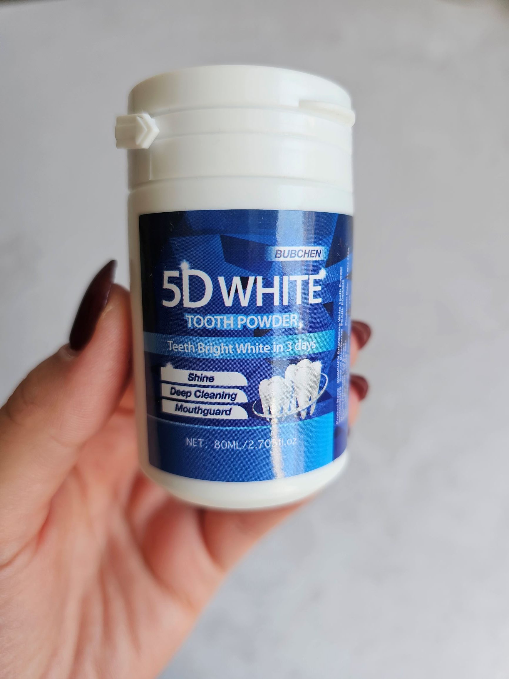 پودر سفیدکننده دندان 5D White با فرمول ویژه خود، لکههای ایجاد شده توسط چای، قهوه، سیگار و غذاهای رنگدار را بهطور مؤثر از سطح دندان پاک میکند و درخشندگی طبیعی دندانها را بازمیگرداند. این پودر ضمن پاکسازی عمیق، با ترکیبات ضدباکتری خود به حفظ سلامت لثه و خوشبو شدن دهان نیز کمک میکند.